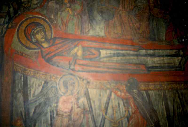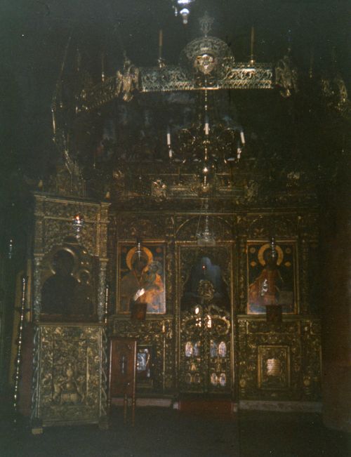 The icon of Blessed Virgin Mary Odigitria is set in a separate wooden sculptured icon stand, which was constructed at the same time as the temple. It is the oldest icon in the Monastery made between the 12th and the 14th century. It is a two-side icon, which depicts Holy Virgin Mary of the type Odigitria named OPHXHOTICCA (Orihiotissa), on one side, whereas, on the other side, are the most eminent Apostles Peter and Paul.